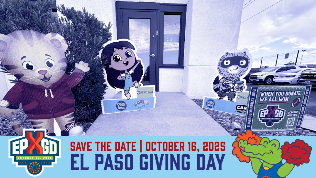 PBS El Paso is thrilled to participate in the Paso del Norte Community Foundation’s El Paso Giving Day, an online giving campaign that ignites the spirit of giving in our region. Early Giving is October 9-15 and Giving Day is October 16. All donations are doubled thanks to our generous match donors.